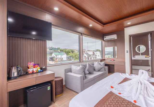 : Phòng đôi sang trọng và tiện nghi nhất của khách sạn với diện tích rộng rãi và thiết kế hiện đại, được trang bị bồn tắm massage, phòng xông hơi và các thiết bị thông minh như Smart TV, điều hòa, bồn cầu thông minh.